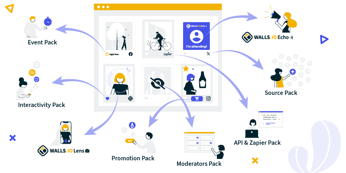 Add the Walls.io Lens photo booth pack to your existing plan, supercharge your social wall, and collect authentic user-generated content.